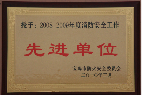 近日,我院被宝鸡市防火安全委员会授予“2008-2009年度消防安全工作先进单位”。(保卫处供稿)
