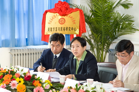 副院长赵荣侠教授在致词中,首先对应邀光临基地的学术委员会专家表示热烈的欢迎和衷心的感谢,接着介绍了基地成立的背景和方向设置情况以及对我院学科建设的意义,最后对基地的研究人员和学术委员会提出了几点希望和要求:一是希望基地科研人员充分把握这一发展机遇,潜心治学,锐意创新,在高层次科研项目、高层次科研成果和高层次科研奖项上有新的突破,打造科研品牌,培育科研精品,形成鲜明的学术特色,使基地发挥学科建设的助推器作用,成为国内关陇方言民俗研究的重镇。二是希望基地负责同志加强基地内部管理,建立健全相关制度,将科研工作和人才队伍培养相结合,促进科研成果向教学层面转化,使关陇方言民俗研究中心成为关陇文化研究的基地和相关领域人才培养基地,为关陇地区经济文化发展做出切实的贡献。三是希望学术委员会的各位专家学者今后在学术研究上竭诚指导,对基地的发展规划献计献策;希望大家能以关陇方言民俗研究中心为平台,在关陇地区校际科研交流与合作方面多做工作,共同为关陇地区社会文化发展服务!