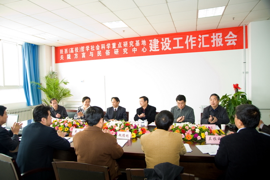 在专家组组长徐为民教授主持下,专家们听取了中文系主任、研究中心主任赵德利教授就基地批复以来所做工作的介绍和基地工作基本规划和设想的汇报,走访考察了关陇方言与民俗研究中心学术报告厅、关陇方言与民俗研究中心资料室、陕西文学研究所,之后就基地的研究目标、科研方向和计划任务书提出富有建设性的意见。