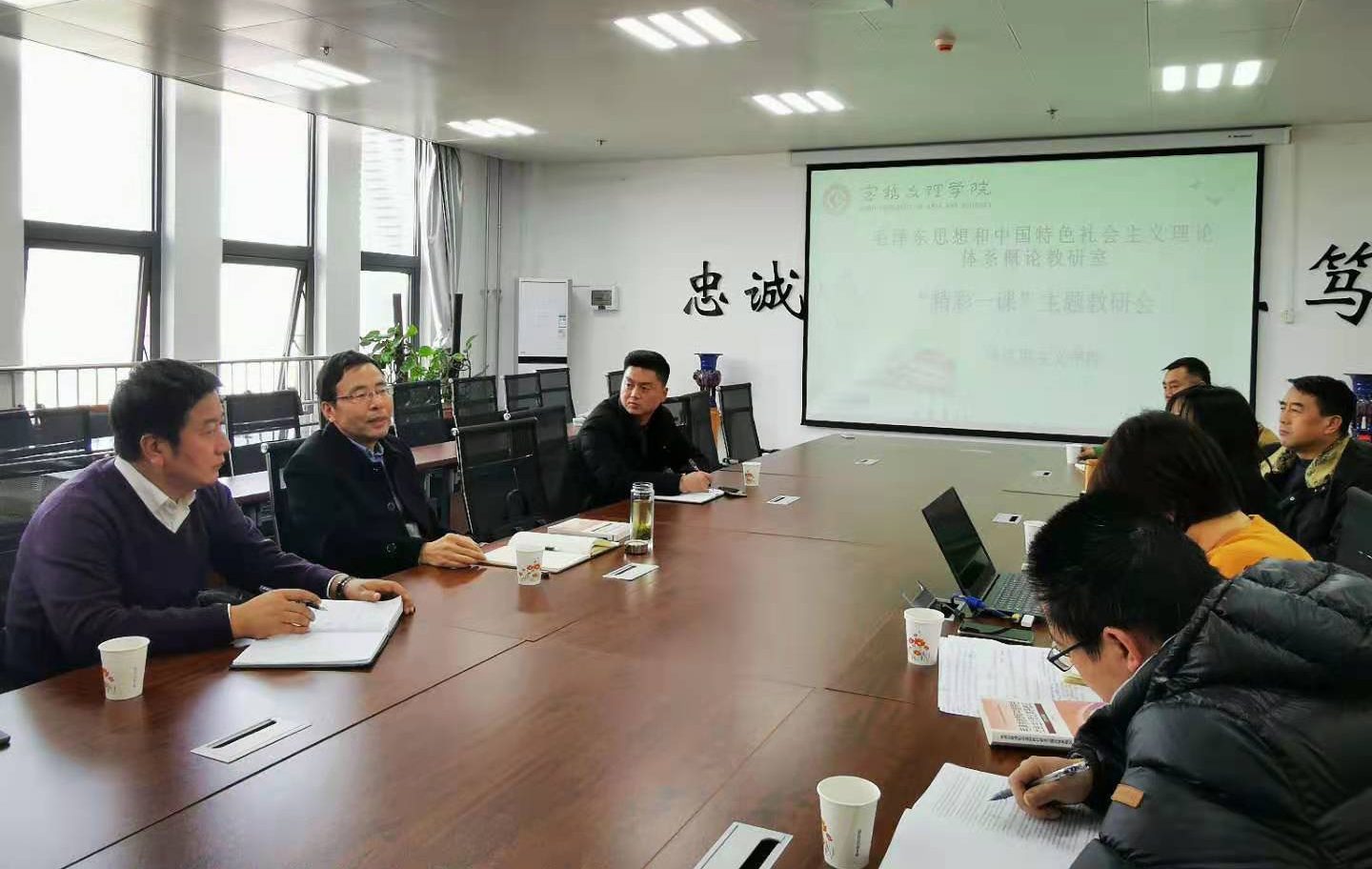 12月11日下午,马克思主义学院“毛泽东思想和中国特色社会主义理论体系概论”教研室在博文楼1201会议室召开“精彩一课”主题教研活动,校长郭霄鹏出席教研活动。活动由教研室主任杨蕾主持。