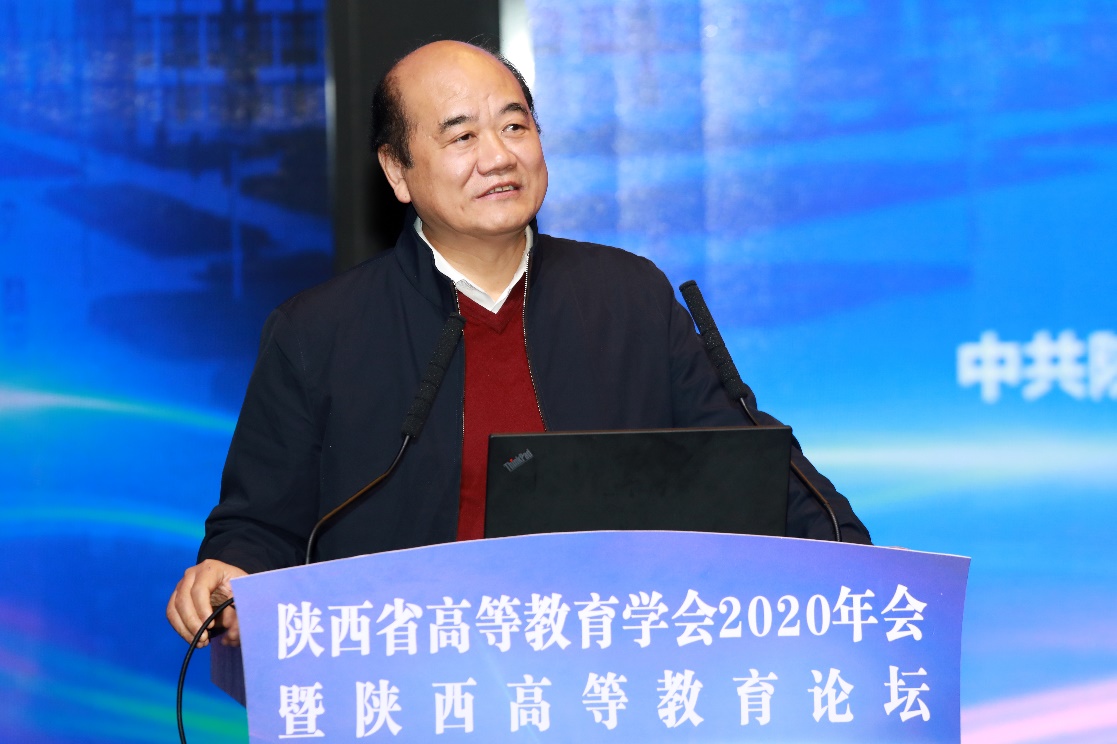 郭立宏在致辞中简要总结了学会本年度的工作情况,对学会在疫情期间开展全省高校在线教学调研工作和设立“疫情防控专项课题”工作给予充分的肯定,并明确了学会下一步努力的方向。他希望大家充分利用好学会这一平台,共同探讨“十四五”规划编制的科学性和有效性,推动陕西高等教育内涵式发展。