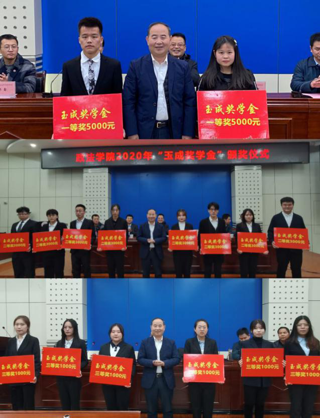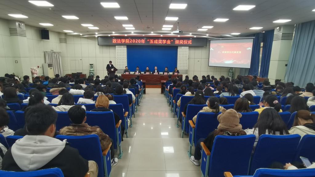 颁奖仪式上,院长张波宣读了《政法学院关于表彰2020年“玉成奖学金”获得者的决定》。党委学工部、横渠书院等单位负责人以及政法学院党政领导、教师代表、全体班主任、辅导员、学生代表等200余人参加了颁奖仪式。