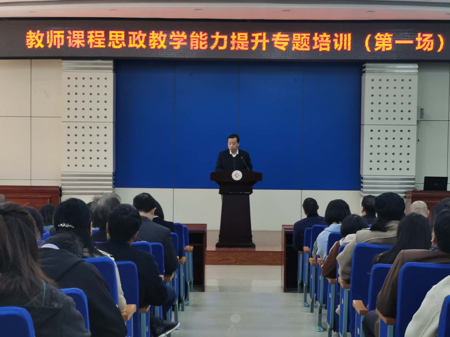 11月10日下午,开元在高新校区木铎厅举办了首场教师课程思政教学能力提升专题培训会,副校长杨子元出席并讲话,西北农林科技大学教学发展中心“课程思政培训团队”培训师、“课程思政教学骨干”张杰副教授作了题为《高校课程思政之我见——以<现代汉语>为例》的报告,教务处副处长张俊辉主持培训会。