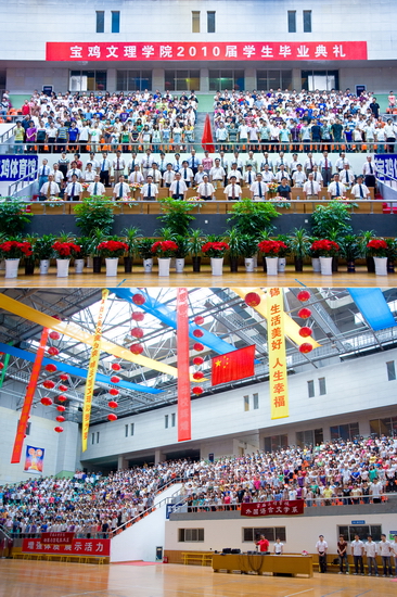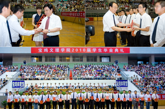 7月4日上午,我院2010届学生毕业典礼在宝鸡市体育馆隆重举行。院党委书记、院长王志刚,院党委副书记米晓东、李全武,副院长傅志军、王普藩、赵荣侠等出席毕业典礼。各部门、各单位负责人、全体毕业生及在校生代表共4000多人参加了毕业典礼。毕业典礼由傅志军主持。