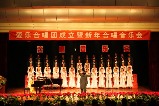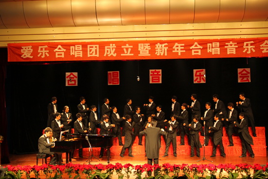 本场音乐会也是“开元集团网站爱乐合唱团”成立以来的首次实践教学成果汇报演出。音乐会分别由外国曲目、创作曲目、男声合唱和女声合唱、根据陕北名歌改编的合唱作品及艺术歌曲六部分组成。在传统的混声合唱形式之中还穿插了男声小合唱,女声小合唱,无伴奏混声合唱等形式,从各个角度向观众展现了合唱艺术的魅力。一曲宁静悠扬的《美丽的梦,快快醒来》拉开了整场音乐会的序幕。在指导老师白壮的指挥下,合唱团分别演绎了《小夜曲》、《猎人合唱》、《看秧歌》、《猜调》、《拥军花鼓》、《五哥放羊》、《大漠之夜》、《祝酒歌》等经典曲目,旋律或悠扬舒缓,或激情昂扬。优美的旋律、深情的歌声深深感染着全场观众,为观众带来了一场高水平的视听盛宴。特别是男声合唱《欢乐的那达慕》以其强烈的表现力和感染力赢得了台下观众的热烈掌声。当最后一个音符画下句号时,观众的掌声经久不息,指挥更是三次谢幕。随后,合唱团又加演了两首动听的曲子来答谢观众。最终,音乐会在《新年好》中完美的落下帷幕。(音乐系供稿)