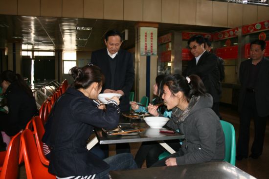 3月11日上午,院党委书记、院长王志刚,副院长王普藩深入老校区学生食堂检查工作。王志刚详细地检查了学生食堂的饭菜质量、价格、安全卫生,询问了大学生文明就餐习惯养成情况,并对开学初学生食堂在保证饭菜质量、稳定饭菜价格等方面所做的工作给予了充分肯定。同时,他还对学生食堂餐厅环境改造提出了具体意见。王普藩对开学以来学生食堂积极应对市场原材料上涨、稳定饭菜价格所采取的大宗采购、贮存等工作作了介绍,并要求学生食堂必须按照上级和学院的要求,做到食堂饭菜质量不降、数量不减、价格不涨。同时,做好学生餐厅维修改造工作。