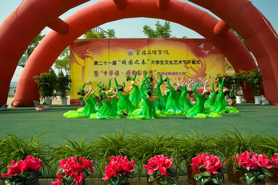 5月6日下午,由教务处、院团委主办,中文系团总支承办的我院第二十一届“校园之春”大学生文化艺术节开幕式暨“中华诵·颂歌献给党”红色经典诵读大赛在新校区举行。院党委组织部部长郑存库、学工部(处)长李周让、教务处处长杨子元、学工部副部长刘景世、数学系党总支副书记王栓堂、中文系党总支副书记赵艳、各系团总支书记以及我院各系学生代表300余人参加了本次活动。院团委副书记党建波主持开幕式。