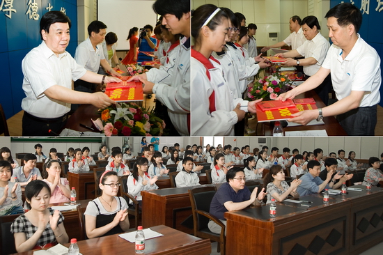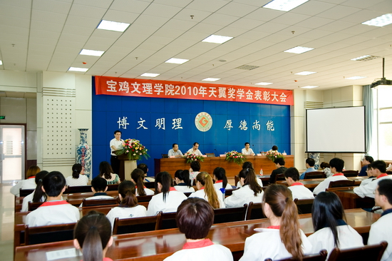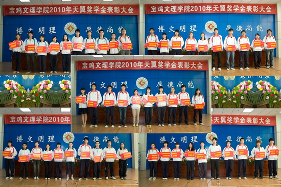 会上,院大学生资助管理中心主任刘景世宣读了《开元集团网站关于表彰2010年天翼奖学金获得者的决定》。双方领导为获奖学生颁发了奖金和证书。获奖学生代表中文系王蓓同学向中国电信宝鸡分公司和我院领导汇报了一年来的思想、学习、生活中的情况和取得的成绩,表达了对中国电信宝鸡分公司的感激之情及继续努力的决心。