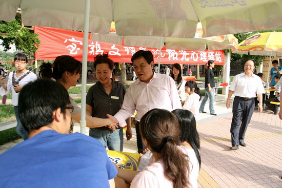 6月1日下午,院党委副书记米晓东来到老校区小广场,参观了我院第四届大学生心理健康宣传月活动。