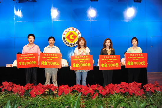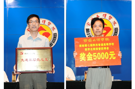 会上,米晓东宣读了学院《关于对省级教学名师李宗孝教授进行表彰奖励的决定》和《关于对孔润年等五位同志主持国家级科研项目进行表彰奖励的决定》,表彰奖励了院级教学名师和2011年上半年获奖的集体与个人。学院党政领导为受表彰的集体和个人颁发了奖牌和奖金。