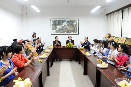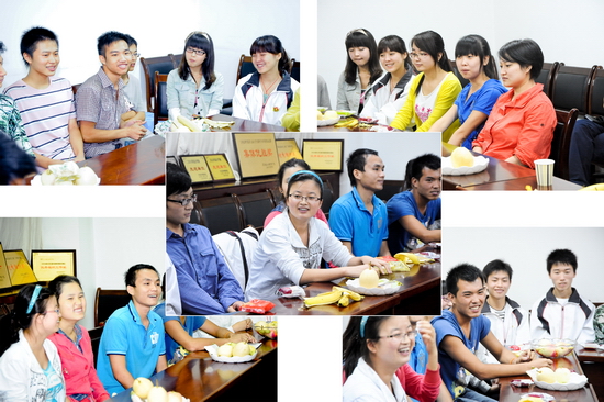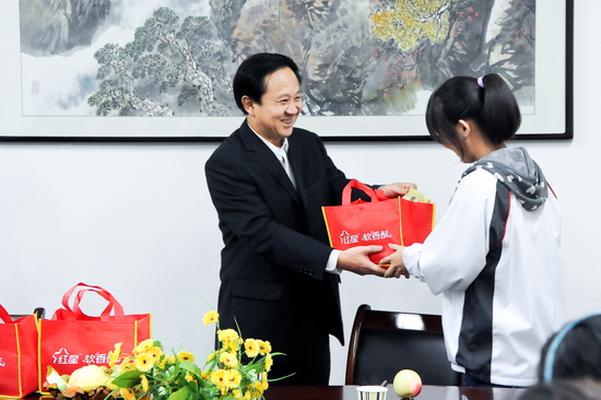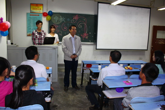 之后,他还为同学们分发了专程带来的月饼,并与同学们一起分享了节日带来的欢乐。他还饶有兴致的观看了同学们自编自演的节目,现场洋溢着轻松欢快的节日气氛。