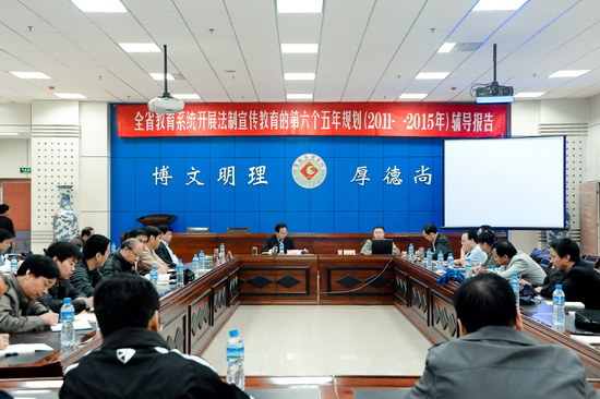 学习会上,党委宣传部部长彭志启学习传达了《全省教育系统开展法制宣传教育的第六个五年规划(2011—2015年)》的主要内容和基本精神。政法系杨文杰教授就《全省教育系统开展法制宣传教育的第六个五年规划(2011—2015年)》的指导思想、工作原则、目标任务、措施与保障、工作步骤与安排等五个方面向与会人员作了详细解读与辅导。