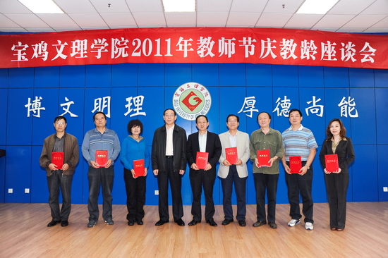 王志刚结合今年教师节主题,就教师队伍建设中的师德师风建设讲了三点意见。一要加强师德师风建设,这是实现学校科学发展的需要,是学校教育的重中之重。学校建校50多年来,始终坚持把培养人这一大学的根本属性作为立校之本,坚持“以生为本,以师为尊”,坚持以质量求生存,把教学和人才培养一直作为学校的中心任务,从严治校,从严治学,为国家培养了一批又一批优秀人才。在多年的辛勤努力下,我院荣获教育部本科教学水平评估优秀学校,又获批为硕士学位授予单位立项建设学校。二要弘扬文理精神,树立新时代的师德观。师德建设的前提是树立新时代的师德观,就是与社会主义价值理念和现代大学精神融为一体的师德观。三要加强制度建设,探索师德建设的长效机制。他希望大家要把庆教龄当作人生新起点,要确定新目标,再做新贡献。要继续做“三育人”的模范履行者。要继续做宝文理大学精神的承载者、守护者和传承者。不断增强教书育人、以身立教的社会责任感,用自己的实际行动践行和弘扬“博文明理、厚德尚能”的校训精神,为全面完成“十二五”发展规划的各项任务而努力。