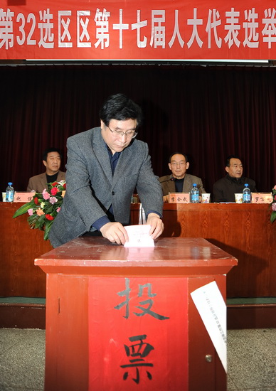 投票开始前,院选举工作领导小组办公室副主任赵健宣读了正式代表候选人政法系讲师卜燕和音乐系讲师董丽娅的简历。总监票员杨科正介绍了选票的填写方法。整个选举按程序有条不紊地进行,选民们认真阅读自己手中的选票,然后慎重地在选票上填下自己意愿,投上自己神圣而庄严的一票。