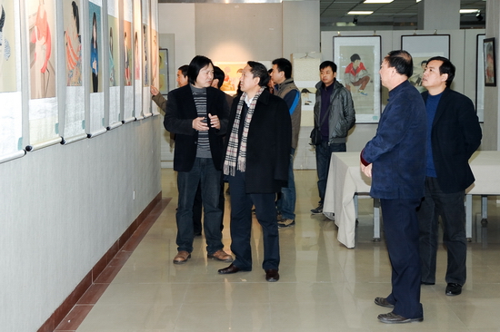 11月15日上午,院党委书记、院长王志刚,副院长傅志军在艺术楼美术展厅参观了由美术系举办的第二届重点建设课程《工笔人物画》教学汇报展。