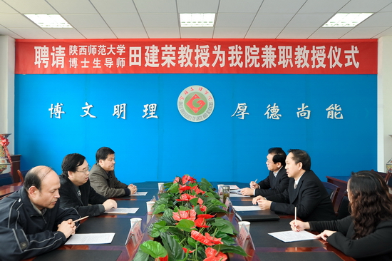 11月18日上午,我院在新校区第一会议室举行聘请仪式,陕西师范大学博士生导师田建荣教授受聘为我院兼职教授。院党委书记、院长王志刚出席会议并讲话,科技处处长田延峰主持会议。