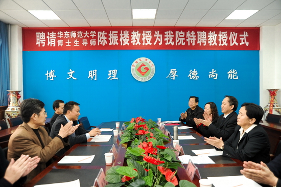 11月28日上午,我院在新校区第一会议室举行聘任仪式,华东师范大学博士生导师陈振楼教授受聘为我院特聘教授仪式。院党委书记、院长王志刚出席会议并讲话,副院长赵荣侠主持聘任仪式。