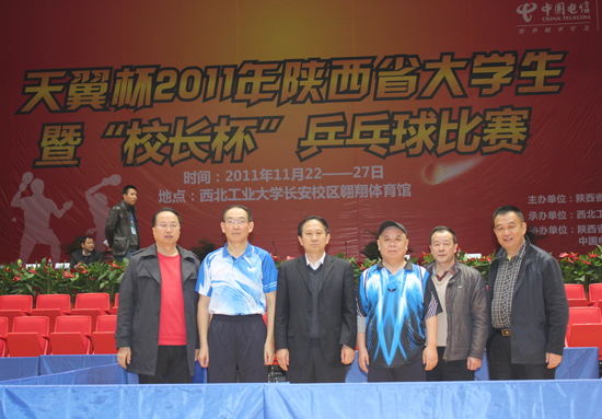 11月26日至27日,由陕西省教育厅主办,西北工业大学承办的“天翼杯”2011年陕西省大学生暨“校长杯”乒乓球赛在西北工业大学长安校区翱翔体育馆隆重举行,我院党委书记、院长王志刚,院党委副书记米晓东、李全武参加了比赛。