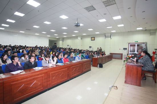 张先生首先从中国语言的分布入手,分别从语系和使用两方面对其加以分类,指出包括满语在内的许多少数民族语言面临濒危的现状;然后结合大量的语例,说明汉语方言分布的复杂性,分析汉语在世界语言中的地位;最后联系汉字的性质、作用,结合异形词、多音字,说明汉字的类型学意义、立体性以及构图的形象性。张先生的报告高屋建瓴,深入浅出,博得大家阵阵掌声,更使在场的师生感受到学术大家的风采与气度。