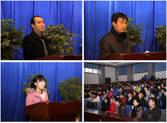 后勤集团党总支书记张炳武宣读了《关于表彰2011年“文明宿舍”的决定》。外语系学生周云姣代表受表彰的“文明宿舍”作了发言。