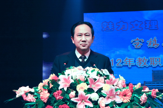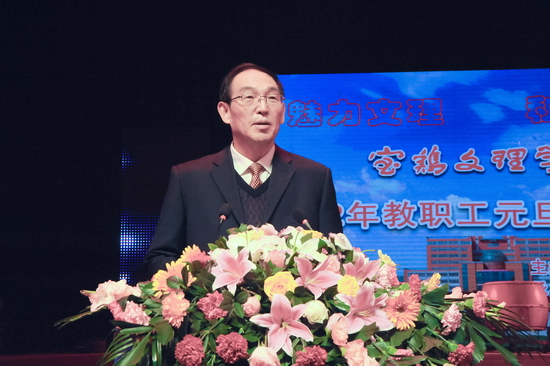 他指出,2011年,是发展之年,更是收获之年。这一年我们实现了“十二五”的良好开局,在省委教育工委省教育厅的指导和院党委的领导下,深入贯彻落实十七届六中全会精神和全国、全省教育工作会议精神,以庆祝建党90周年为契机,在教育教学和人才培养、学科建设和科研工作、校园文化建设和文化传承创新、社会服务等方面取得了令人欣慰的成绩。尤其是高质量完成立项建设任务,顺利通过中期检查;与宝鸡市人民政府举行筹建宝鸡大学签字仪式,开启了发展的新征程,使学院站在了一个崭新的历史起点上。他希望大家要倍加珍惜来之不易的发展势头,倍加珍惜团结稳定的和谐局面,倍加珍惜千载难逢的发展机遇,团结一致,再接再厉,为谱写我院事业发展的崭新篇章做出新的更大贡献。