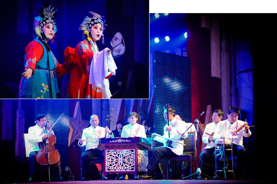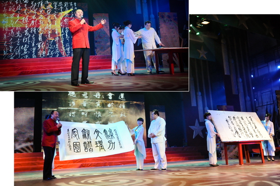 晚会在舞蹈《龙腾虎跃闹新春》宏大的场面中拉开序幕,热情奔放的表演,浓浓的喜庆之情撒满了礼堂的四面八方。舞蹈《扎西德勒》、《草原的溜溜城》、《踏歌起舞》及《外文歌曲大连唱》给我们带来了不同的民族风情,表演既潇洒自如、活力四射,又优雅柔美、脉脉含情。戏曲表演《说唱脸谱》、京剧《智斗》演员的一招一式、举手投足、酷似专业水平。舞蹈《炫舞时代》、《快乐你懂的》洋溢着青春的活力。歌伴舞《中华大家园》让文理人瞬间绽放出对祖国大家庭的热爱之情。创作节目《我爱我家》掀起了晚会的高潮,再现了我院教职工乔迁新居的喜人场景,表达出文理人不仅爱自己小家的浪漫温馨,更爱文理大家庭的凝聚和谐。《将进酒》诗画合璧为观众展示了国画的高雅、诗词的深邃。表演唱《文理新唱》、秦腔演唱《赞文理》则用不同的表现形式赞扬了我院各项事业取得的新发展、新变化、新成就。混声四部无伴奏合唱《长相思》、《花儿随想曲》让观众如痴如醉,充分展示了我院爱乐合唱团的艺术造诣。院领导表演的小合唱《革命人永远是年轻》再次掀起了晚会的高潮,激发了大家立足岗位努力工作、再创辉煌的信心和勇气。晚会在《今夜无眠》的欢乐氛围中圆满落下帷幕。晚会结束后,学院党政领导与演职人员合影留念。