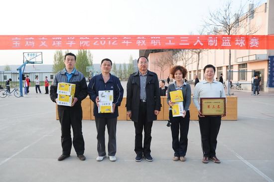 我院2012年教职工三人制篮球赛于4月7日在新校区篮球场隆重举行,院党委书记、院长王志刚,院党委副书记、工会主席李全武等领导出席开、闭幕式并对获奖代表队颁奖。院工会副主席张鹏主持开幕式。
