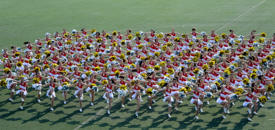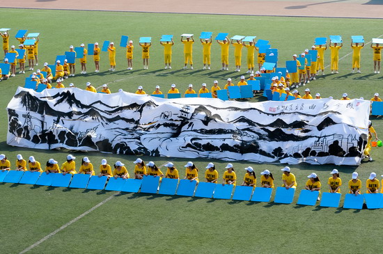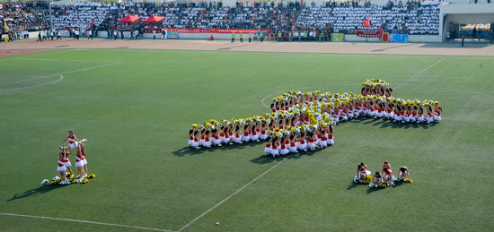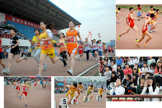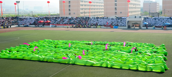 在开幕式和闭幕式上,我院大学生大型歌舞表演《时代·人文》、《舞动青春 魅力外语》、《墨舞丹青》和学生的歌唱表演为运动会增添了靓丽的色彩。