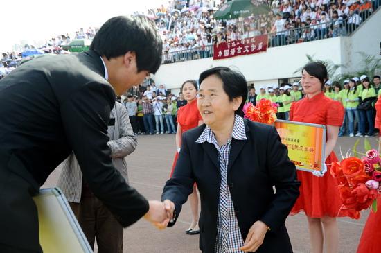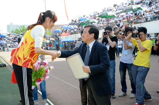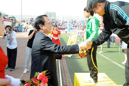 傅志军代表学校党委和行政向取得优秀成绩的代表队和运动员表示热烈的祝贺,向为运动会成功举办付出辛勤劳动的组委会全体成员、全体运动员、教练员、裁判员以及工作人员和全院所有老师、同学们表示衷心的感谢!他说,本届运动会是一次“文明、热烈、高效、和谐”的体育盛会,在“更快、更高、更强”的奥林匹克精神激励下,师生同场竞技,展现了文理人的风采,取得了体育竞赛和精神文明的双丰收。他要求广大师生以本次运动会为契机,再接再厉,积极响应教育部、国家体育总局、共青团中央联合下发的阳光体育运动号召,弘扬快乐体育、健康体育的理念,牢固树立终身体育的思想,积极进行体育锻炼,开创开元体育工作的新局面。
