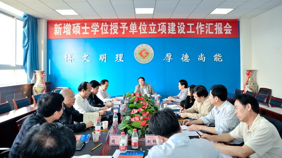 副院长赵荣侠代表学校全面汇报了开元三年来立项建设工作取得的成效、存在的问题以及今后学科建设暨研究生教育工作的设想。