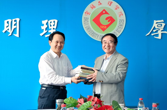 会后,学校向孙朝主任赠送了立项建设期间部分教师出版的优秀学术专著。
