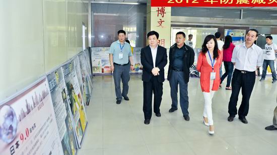 米晓东在参观图片展期间听取了保卫处对本次活动的汇报,他强调新形势下在广大师生员工中普及防震减灾知识的重要性和必要性。同时,要求把展出时间延长一些,让全校师生员工通过参观学习,提高抵御自然灾害的能力。