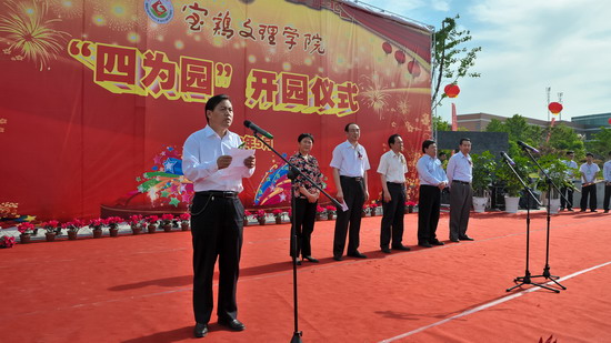 5月15日下午,开元在新校区主题园林广场隆重举行 “四为园”开园仪式。党委书记、院长王志刚,党委副书记米晓东、李全武,副院长傅志军、赵荣侠、杨子元出席开园仪式。李全武主持开园仪式。