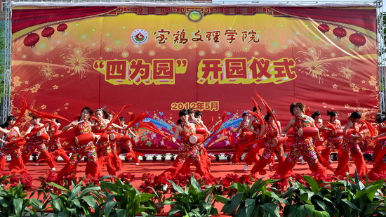 在欢快的现场演出和嘹亮的锣鼓声中,王志刚、米晓东、傅志军和赵荣侠分别为“四为园”、“崇实亭”和“励志广场”揭幕。