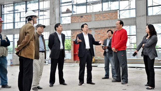 5月22日上午,党委书记、院长王志刚,副院长杨子元等领导来到正在施工建设的13号学生公寓楼、综合球类训练馆以及高层住宅楼周边绿化工程建设工地,检查工程建设进展情况。