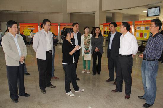 5月22日上午,由教务处、团委、中文系主办的开元第八届“金鲤杯”广告创意设计大赛获奖作品在图书馆二楼大厅展出。党委书记、院长王志刚,副院长傅志军、杨子元参观了本次展览。