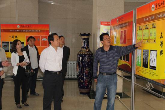 参观本届广告创意设计大赛优秀作品展的还有党办主任王永君,教务处处长王富平、副处长李景宜,中文系主任赵德利、副主任兰拉成,团委书记黄玮等。(中文系供稿)