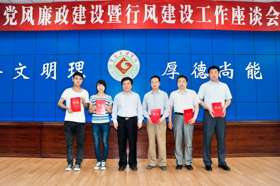 座谈会上,中文系党总支书记李晓峰、美术系党总支书记唐晓育、教务处处长王富平、人事处处长陈来应、科技处处长田延峰、招生办公室主任栾宏、财务处副处长赵金玲、基建处处长刘宗杰 、国资处处长胡西贤、后勤管理处处长赵健、后勤集团党总支书记张炳武等11名处级干部分别结合自身实际,从师德师风建设、人才队伍建设、内部财务管理、实施“阳光招生”、基建修缮招投标、大宗物资设备采购、治理教育乱收费等方面进行了很好的交流发言。