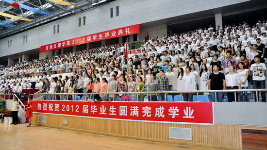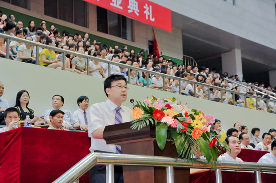 物理与信息技术系副教授王参军博士代表全体教师对毕业生圆满完成学业表示热烈祝贺,他与学生们分享了自己作为一个承上启下的文理人的体悟与感受,对毕业生们的未来寄予了美好的期望。机电工程系毕业生刘锋代表全体毕业生向四年来辛勤培育他们的老师们表示了诚挚的谢意,表示要做一个睿智而富有激情的人,胸怀大志而脚踏实地的人,富有责任并勇挑重担的人。历史文化与旅游系2009级学生刘静雯代表全体在校生衷心的祝愿全体毕业生一帆风顺,事业有成,表示一定会紧握接力棒,用他们的青春和智慧,续写宝文理辉煌的篇章。