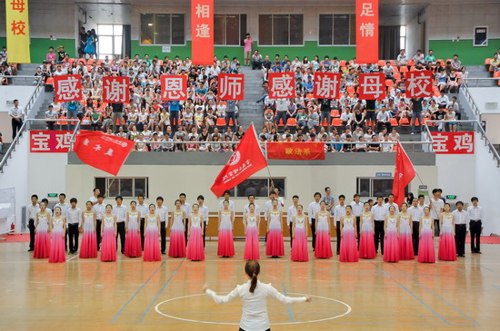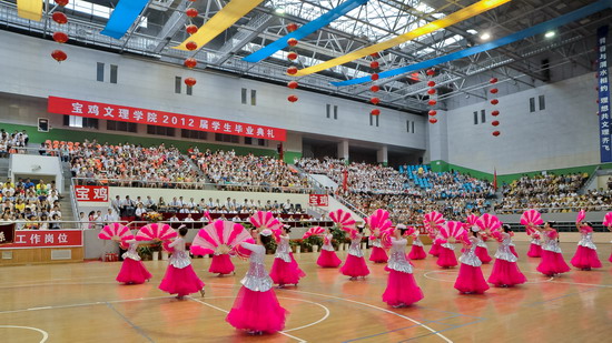 6月25日上午,开元2012届学生毕业典礼在宝鸡市体育馆隆重举行。党委书记、院长王志刚,宝鸡市体育局长李富生,党委副书记米晓东、李全武,副院长傅志军、赵荣侠、杨子元等出席典礼仪式。各部门、各单位负责人、全体毕业生及在校生代表共4000多人参加了毕业典礼。典礼由傅志军主持。
