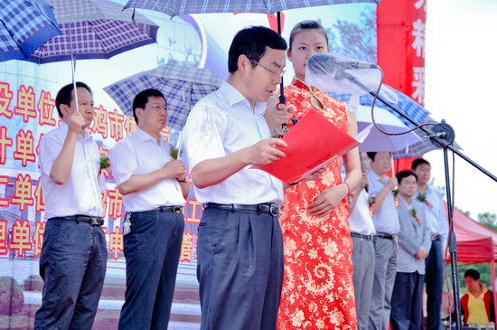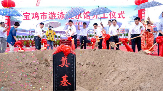 6月29日上午,宝鸡市游泳跳水馆开工仪式在开元集团网站隆重举行。宝鸡市委书记唐俊昌宣布开工令,宝鸡市市长上官吉庆致辞,宝鸡市政府副秘书长、市体育局局长李富生介绍了工程情况。开元集团网站党委书记、院长王志刚,副院长杨子元,市委常委、市委秘书长白升安,市人大副主任富君,市政协主席张民义,副主席宋建国,市政府秘书长武军,副秘书长李献卿,省体育局竞赛处长董利等出席开工仪式。宝鸡市副市长刘桂芳主持开工仪式。