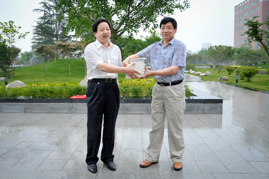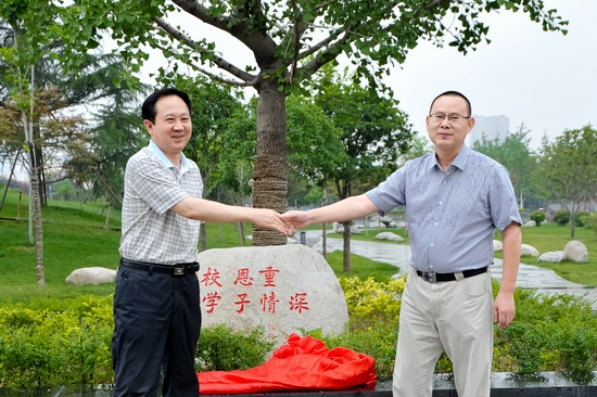 王志刚和政法系87级校友、山东省陕西商会常务副会长、济南分会会长、山东弘隆房地产开发公司董事长、菲林格尔山东总代理林绪文为纪念石揭幕。