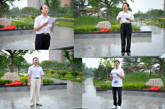 校友代表、泾阳县委宣传部副部长何冠雄在讲话中表达了对母校的深切情意。在校生代表、政法系2011级行政管理专业王崔同学在发言中表示,要向校友学习,勤奋学习,学会做人,学会感恩。在植树仪式结束后,何冠雄校友给学校图书馆、老师和校友赠送了自己的《天地悠悠》和《飘落心灵的花瓣》等两部著作。
