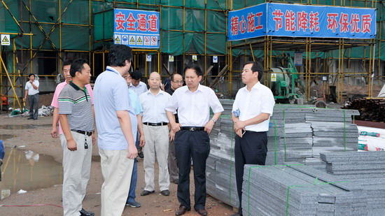 7月8日上午,党委书记、院长王志刚,副院长杨子元等领导冒雨来到正在进行室内施工建设的13号学生公寓楼建设工地,检查工程建设进展情况。