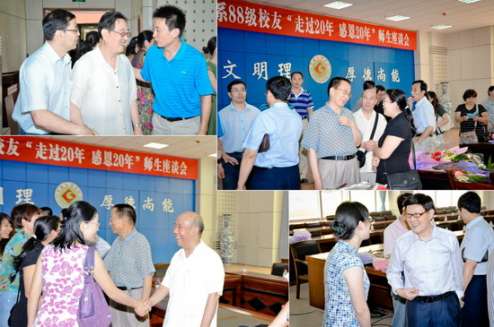 座谈会上,校友们首先各自向学校领导和恩师们汇报了自己毕业二十年来的工作、学习和生活情况。