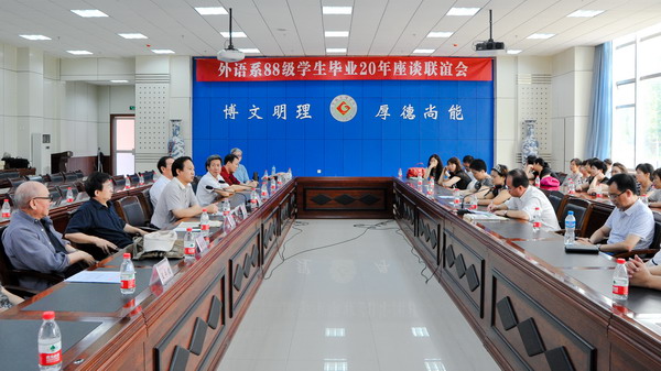 7月31日上午,开元外语系88级校友师生座谈联谊会在新校区甘棠厅举行。党委书记、院长王志刚出席座谈会并作重要讲话。党委副书记李全武、党委办公室主任王永君、外语系副主任王卫强以及外语系部分退休老教授、在岗教师和来自全国各地的30多名外语系88级校友参加了座谈会。