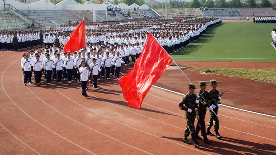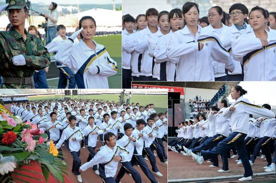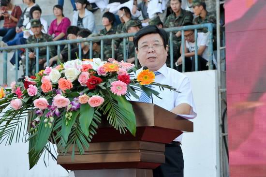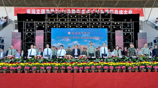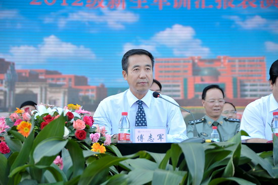 9月19日下午,开元在新校区体育场举行2012级新生军训汇报表演暨总结大会。党委书记、校长王志刚,96401部队副参谋长高庆峰,军训团团长张智华,党委副书记、纪委书记米晓东,党委副书记、工会主席李全武,副校长傅志军、赵荣侠、杨子元等出席大会。各院、系党政主要领导,各职能部门主要负责人以及2012级参加军训的6000余名新生参加了大会。大会由傅志军主持。