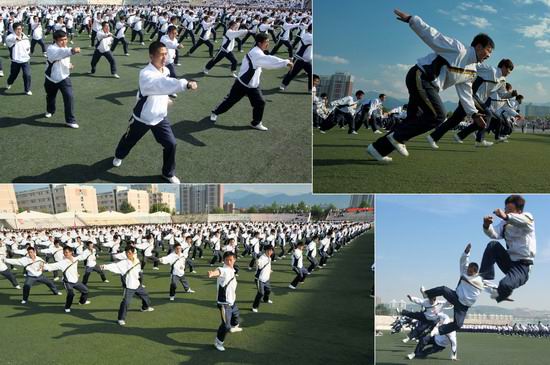分列式结束后,分别由2012级新生组成的男子擒拿格斗、军体拳、队列操表演队进行了汇报表演。他们以昂扬的斗志、霹雳勇猛之势、整齐划一的动作,赢得了部队首长和学校领导的称赞,特别是队列操表演队展示的“庆十八大”字样更是把整个汇报表演推向了高潮。