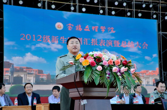 米晓东作总结讲话,他代表学校党委和行政对为开元军训工作付出辛勤汗水的96401部队首长和教官表示衷心的感谢,向圆满完成军训任务的2012级学生以及取得优异成绩的单位和训练标兵表示祝贺!他说,承担此次军训任务的96401部队,是一支具有光荣革命传统的文明之师、威武之师。部队在任务十分繁重的情况下,选派80名教官来校施训,体现了部队对学校教育事业的关心,对莘莘学子的关爱。10天来,全体教官精心组织、严格训练、率先垂范,他们高度的责任心,负责的态度,顽强拼搏的精神给全校师生留下了深刻的印象,展示了人民子弟兵的良好形象。他告诫同学们,军训是一个人健康成长的必经、难忘的阶段。通过军训,同学们增强了体质,磨练了意志,增长了才干,树立了良好的纪律精神。训练场上的经历将是同学们今后获取知识、增长才干、取得优异成绩的法宝。(党委宣传部、武装部供稿)