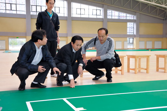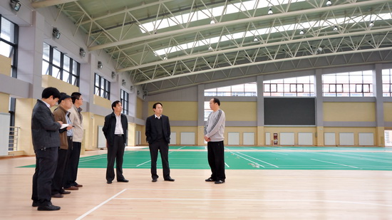 校领导在体育馆实地察看了铺设一新的篮球训练场地和全塑胶的羽毛球、乒乓球、力量训练场地以及供教学使用的画室、舞蹈室等。体育系主任吴长稳就体育馆设施的基本情况向校领导作了详细汇报,校领导在听完汇报后对场馆内饰过程中的相关问题提出了明确的建议和意见,并要求相关部门尽快落实。